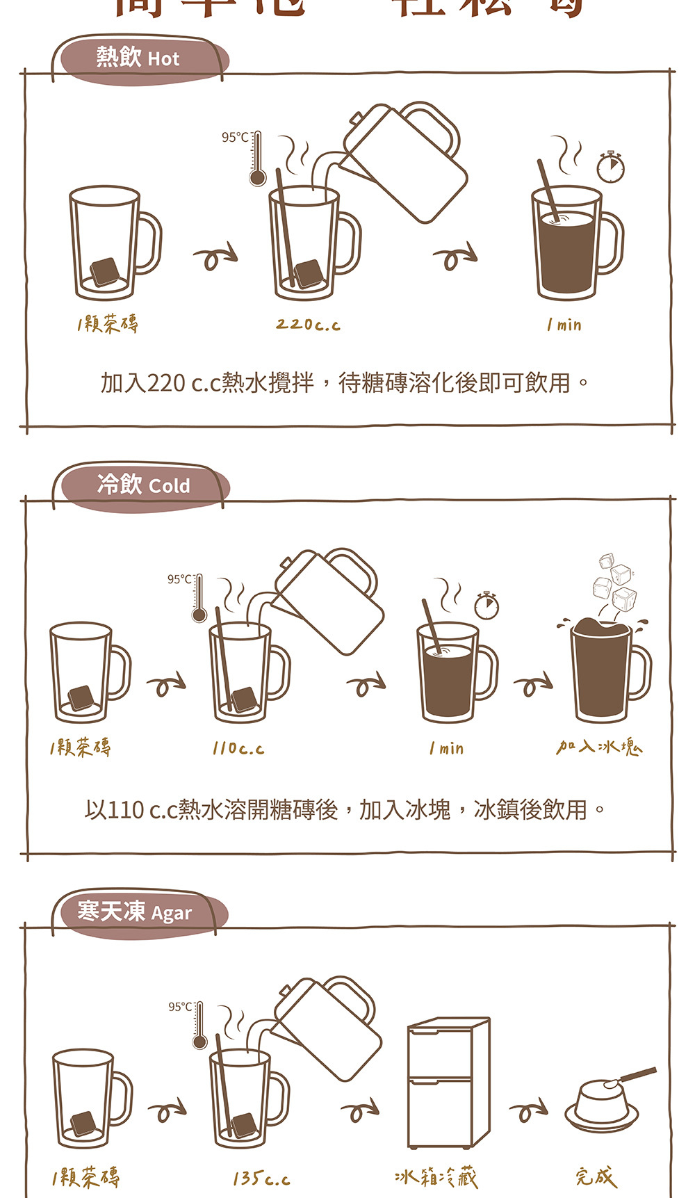 ※ 建議水量沖泡後為水嫩口感,適口性便於孩童飲用。隨沖泡水量減少則凍感升級。