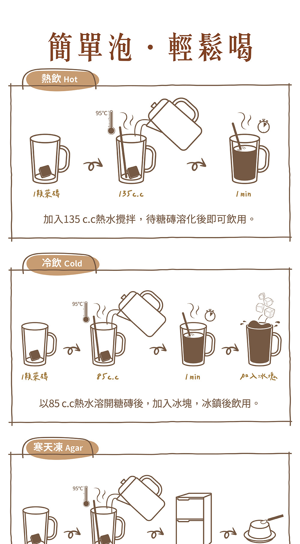 ※ 建議水量沖泡後為水嫩口感,適口性便於孩童飲用。隨沖泡水量減少則凍感升級。