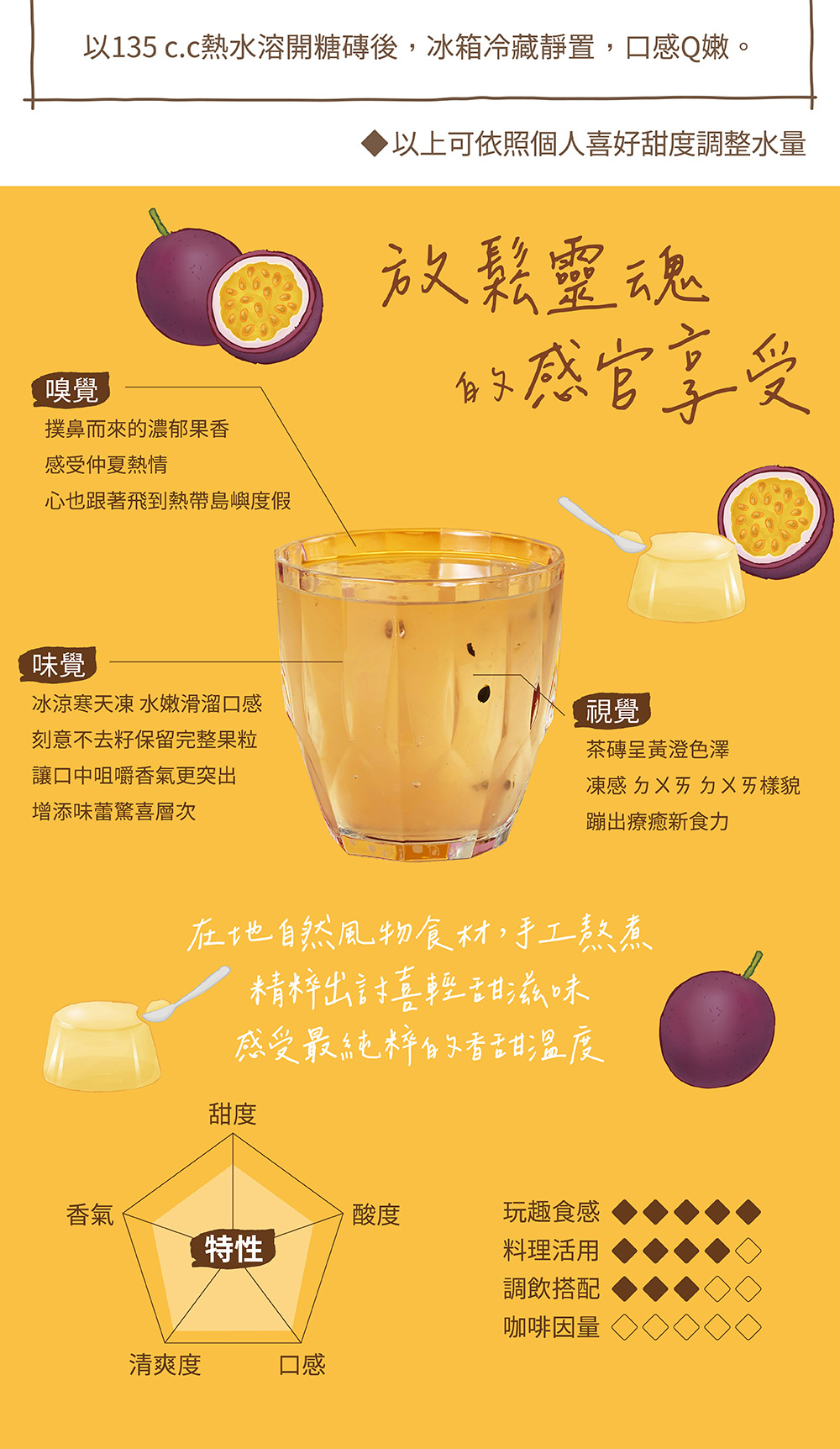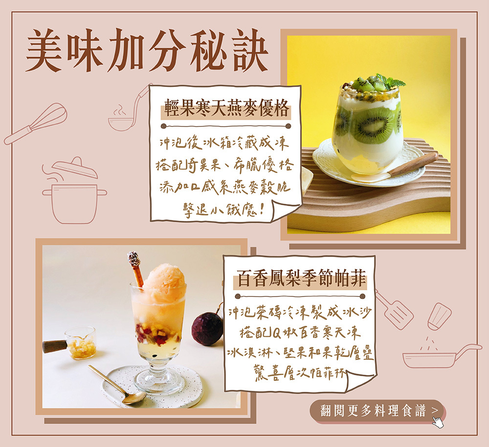 ※ 建議水量沖泡後為水嫩口感,適口性便於孩童飲用。隨沖泡水量減少則凍感升級。