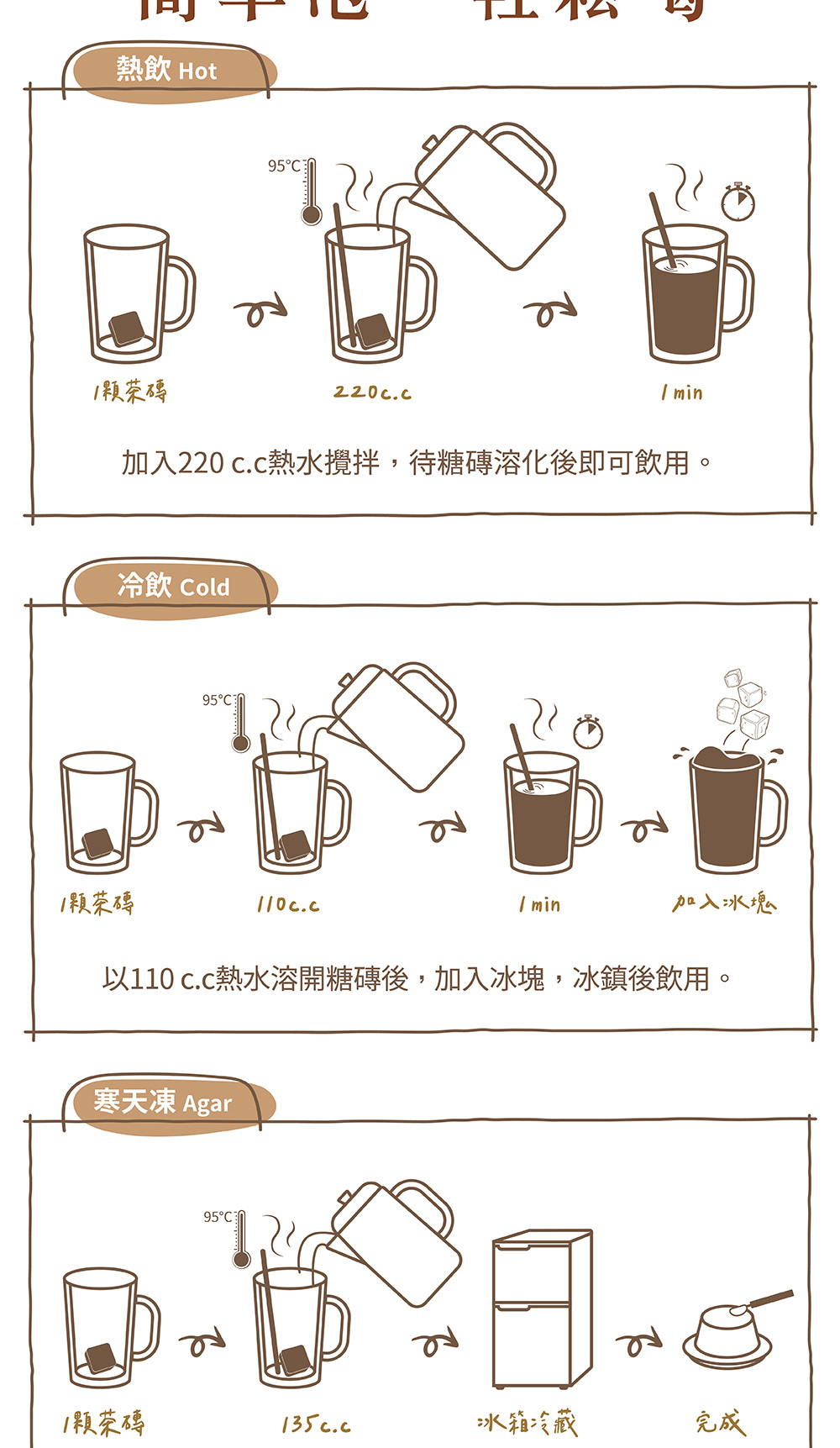 ※ 建議水量沖泡後為水嫩口感,適口性便於孩童飲用。隨沖泡水量減少則凍感升級。