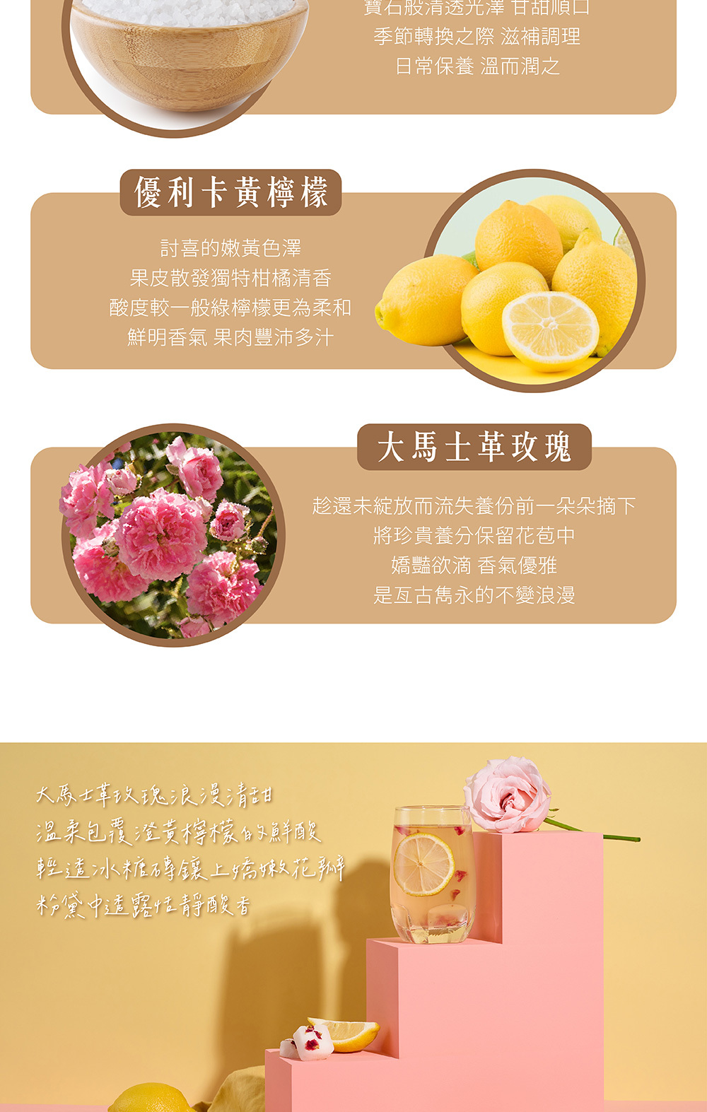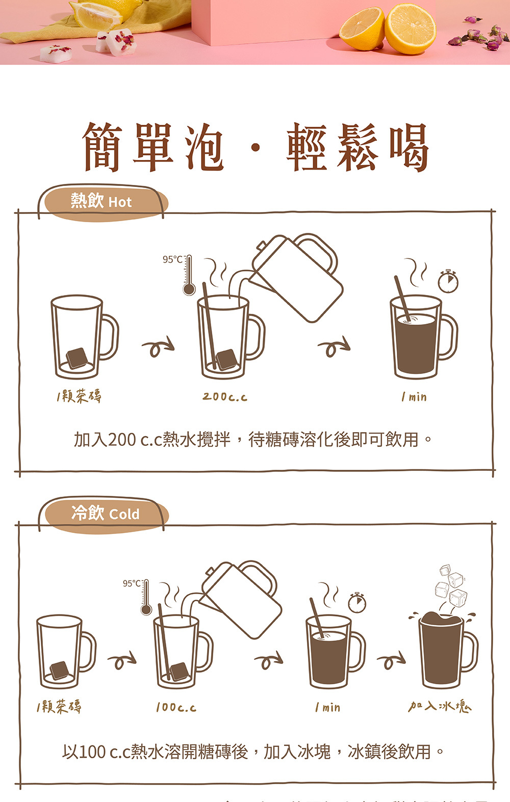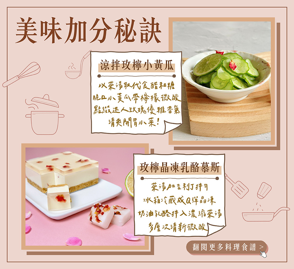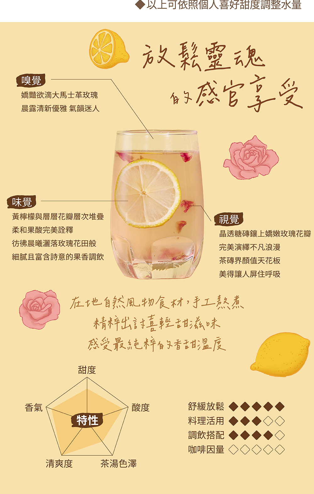 ※ 茶磚外觀色澤易受玫瑰花食材自然的褪色現象而變化,屬正常現象請安心飲用